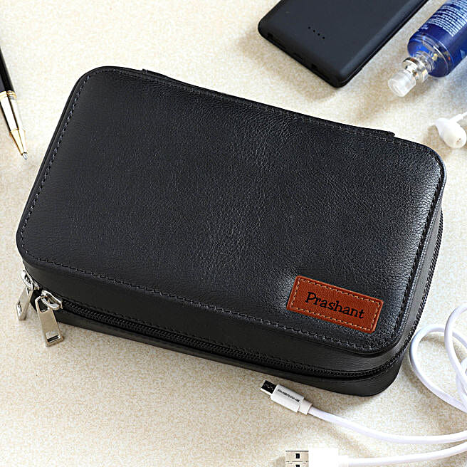 Personalised Black Vegan Leather Pouch