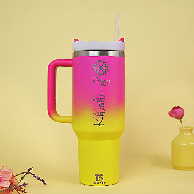 Personalised Hot Pink and Yellow Tumbler