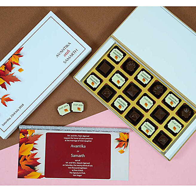 Personalised Leaf Wedding Invitation & Chocolates