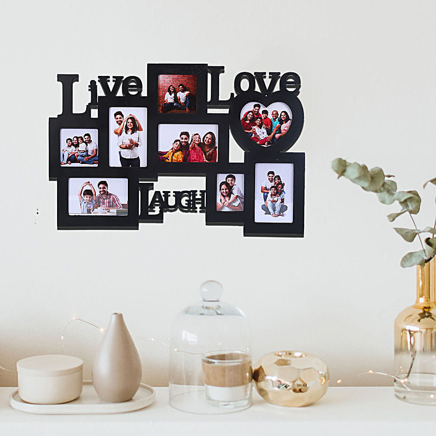 Live love laugh wall 24x15 personalized photo frame and sizes are: 1. 3.5x3.5, 2. 3.5x3.5, 3. 5.5x3.5, 4. 3.5x5.5, 5. heartshaped, 6. 3.5x5.5, 7. 3.5x2.5, 8. Net Quantity: 1 Unit Country of Origin: India