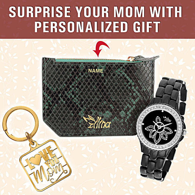 Personalised Love You Mom Watch With Keychain & Card Holder