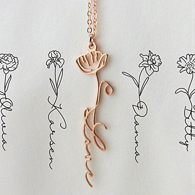 Personalised Name Birth Flower Necklace