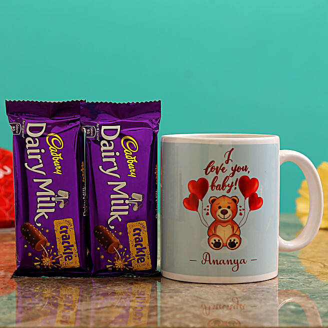 Personalised Name Teddy Print Mug With Cadbury Crackle Chocolates