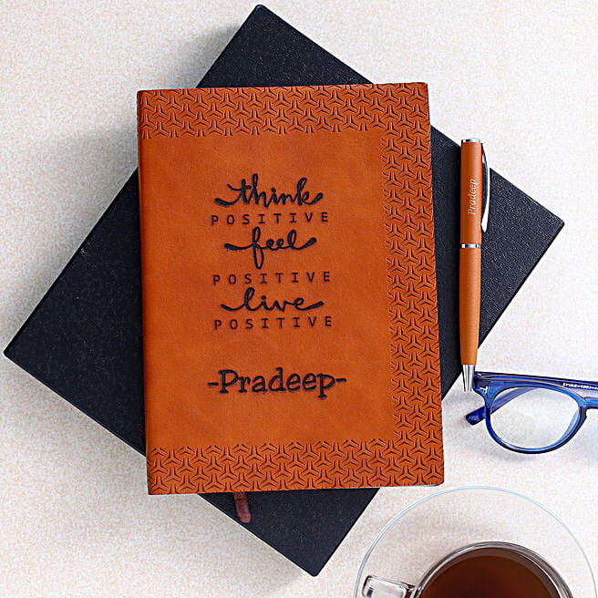 Personalised Notebook & Metal Texture Pen Set- Tan