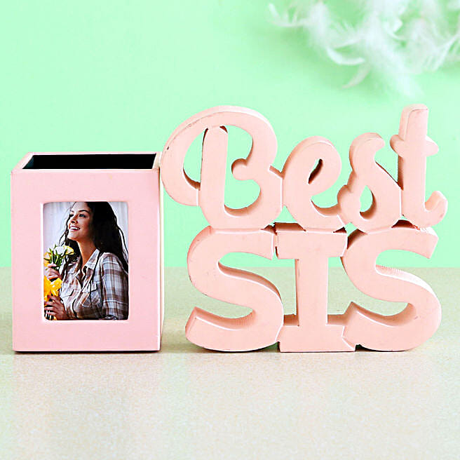 Personalised Photo Frame Pen Stand For Sister