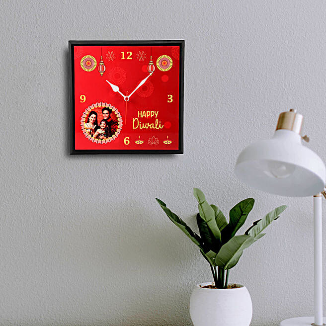 Personalised Red & Black Diwali Wall Clock- Hand Delivery