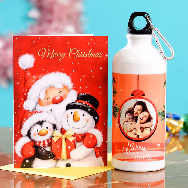 Personalised Xmas Special Bottle Greeting Card Combo