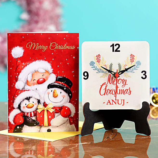 Personalised Xmas Special Table Clock Greeting Card Combo