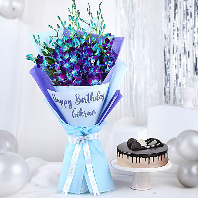 Personalized Birthday Bouquet and Chocolate Cake