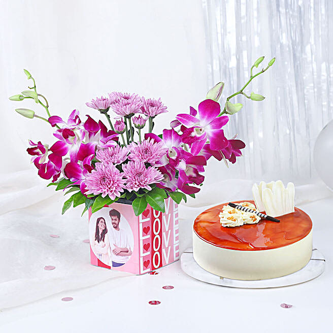 Personalized Floral Beauty Vase with Butterscotch Cake