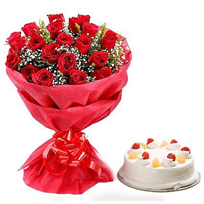 Pineapple Cake with Flowers Eggless Deluxe