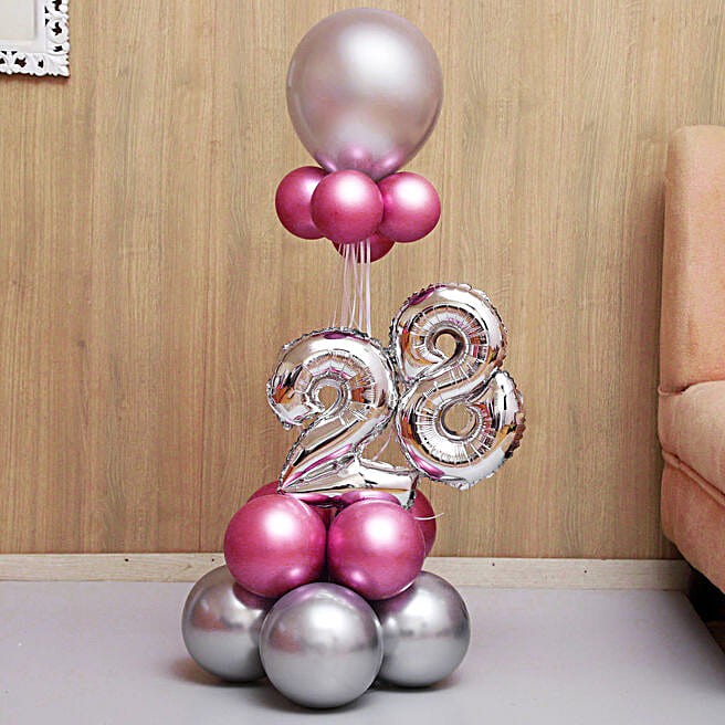 Pink & Silver Number 28 Balloon Bouquet