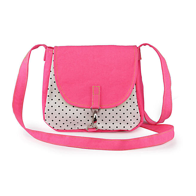 Pink Dotted Canvas Cross-Body