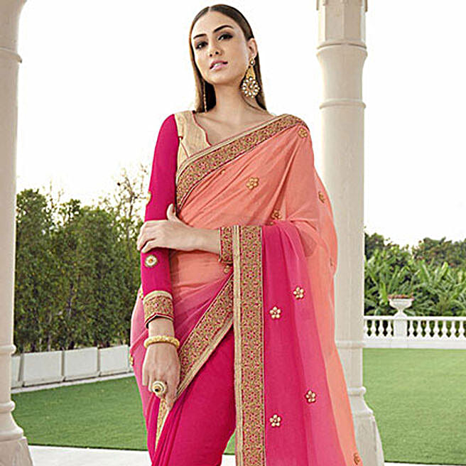 Pink Embroidered Georgette Net Wedding Saree