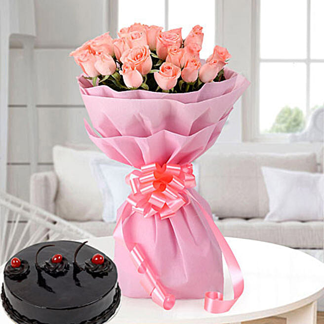 Pink Roses 20 with Cake