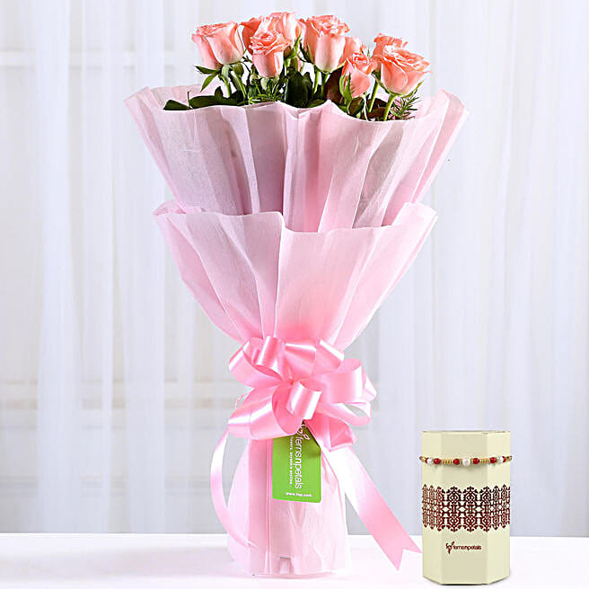 Pink Roses Bouquet & Rakhi