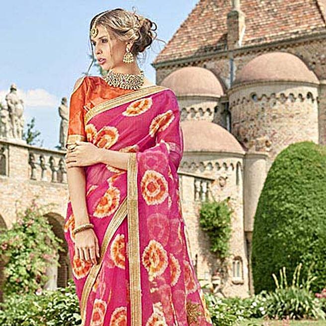 Pink Supernet Bandhej Printed Saree