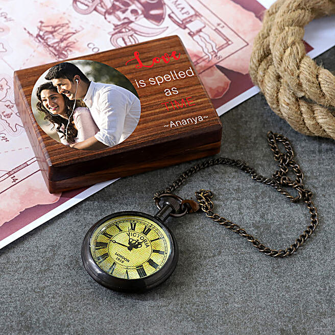 Pocket Watch Victoria 1915 With Personalised Wooden Box