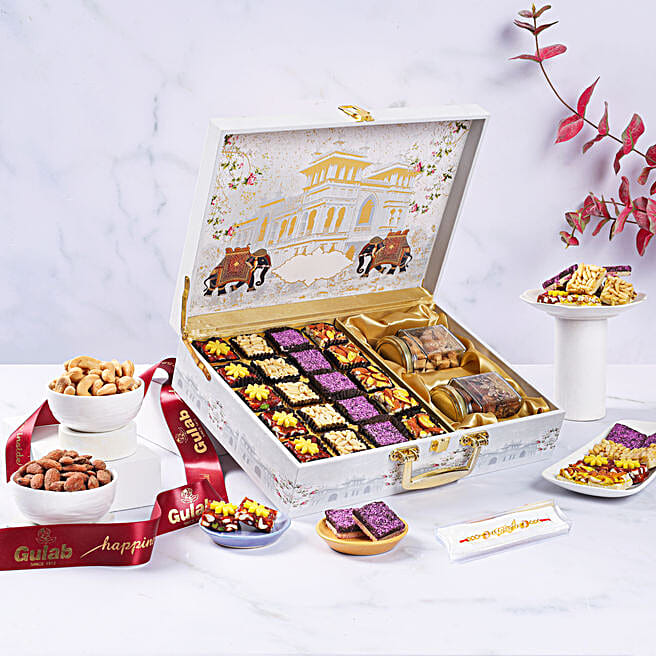 Premium Rakhi Hamper with Sweets and Dry Fruits
