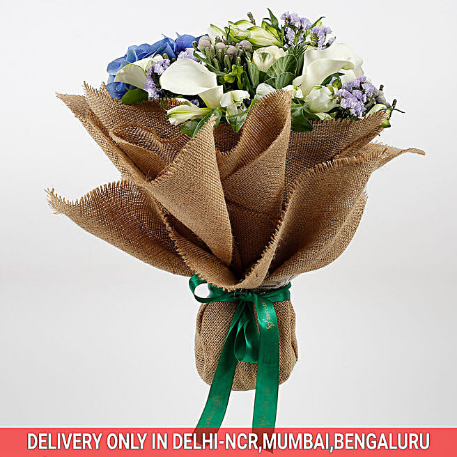 Premium White Calla Lilies Blue Hydrangea Bouquet