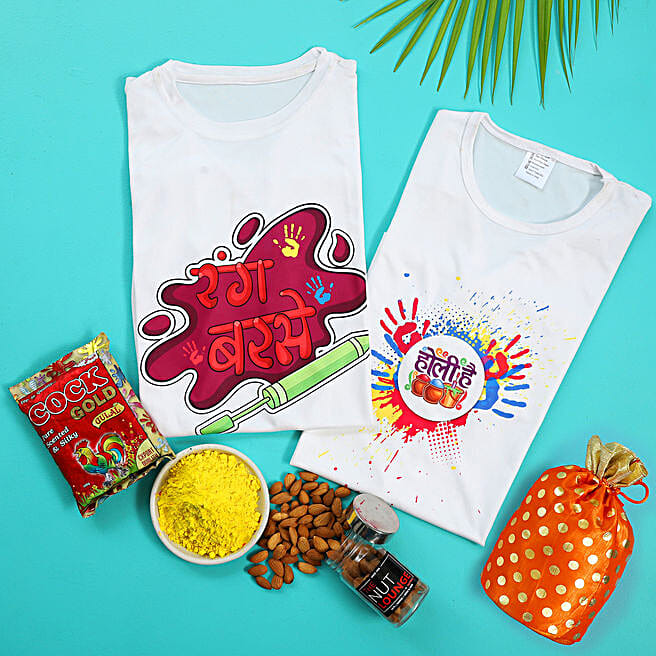 Printed Large & XL Set of 2 T shirts with Gulal & Almonds