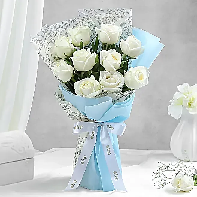 Pristine White Roses Bunch