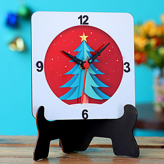 Quintessential Christmas Pine Table Clock