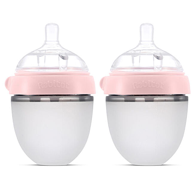 Rabitat Squeezy Silicone Feeding Bottle 150ml Double Bottle Pink