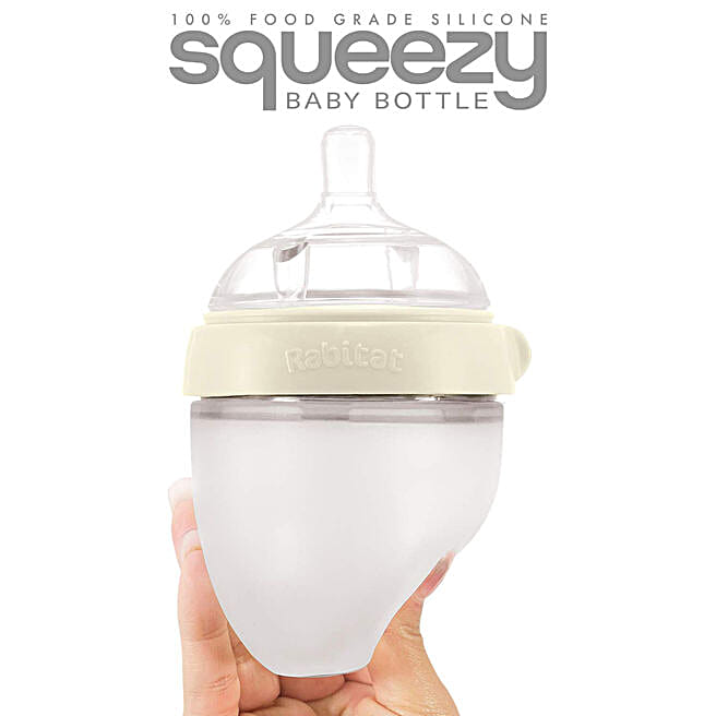 Rabitat Squeezy Silicone Feeding Bottle 150ml Single Bottle Daisy White