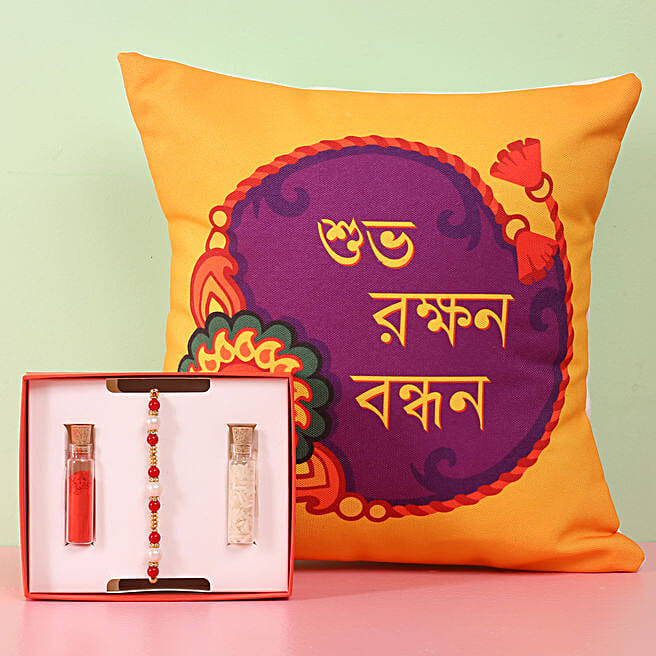 Rakhi & Happy Raksha Bandhan Cushion- Bengali