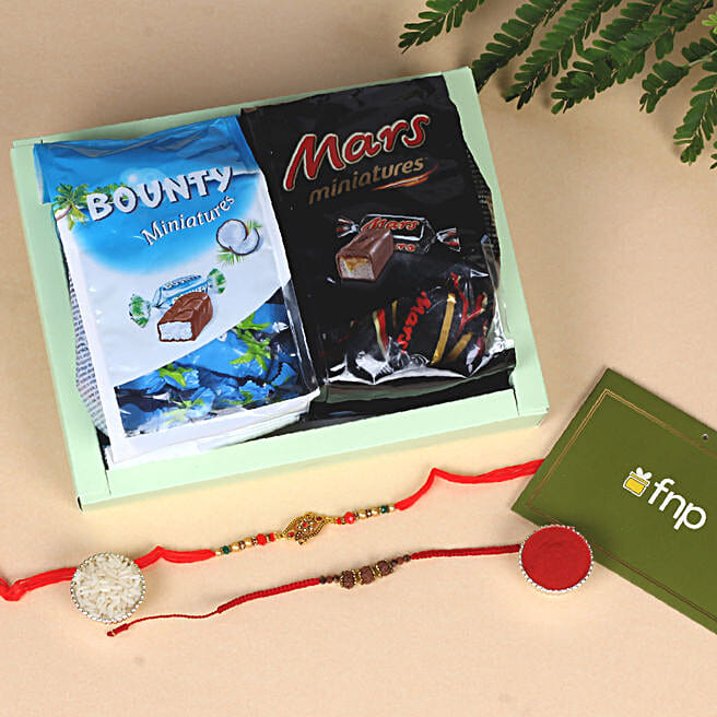 Rakhi Set with Mars and Bounty Chocolates