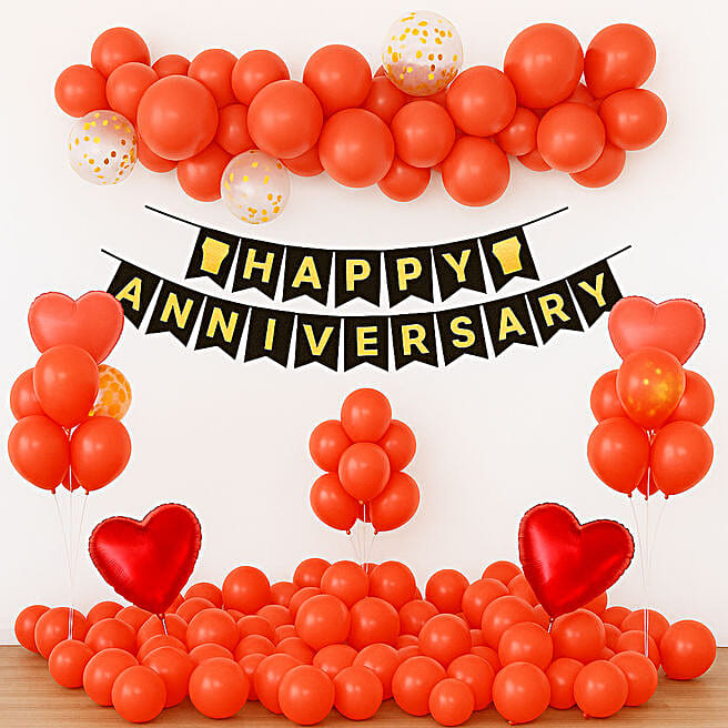 Red N Gold Anniversary Balloon Arch