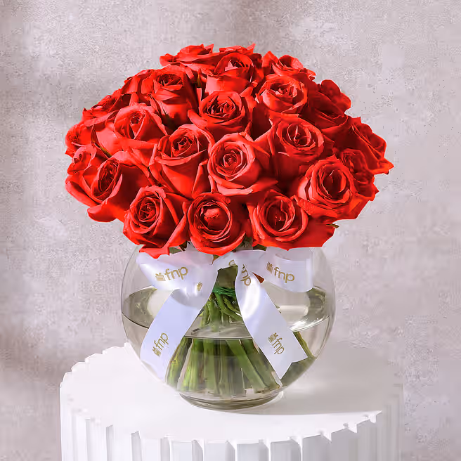 Red Rose in Glass Vase Arrangement