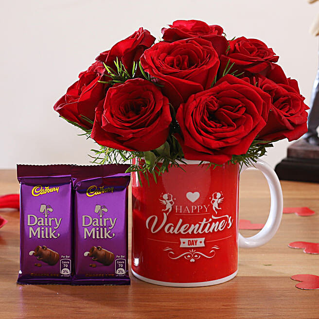 Red Roses In Valentine Printed Mug and Cadbury Dairy Milk