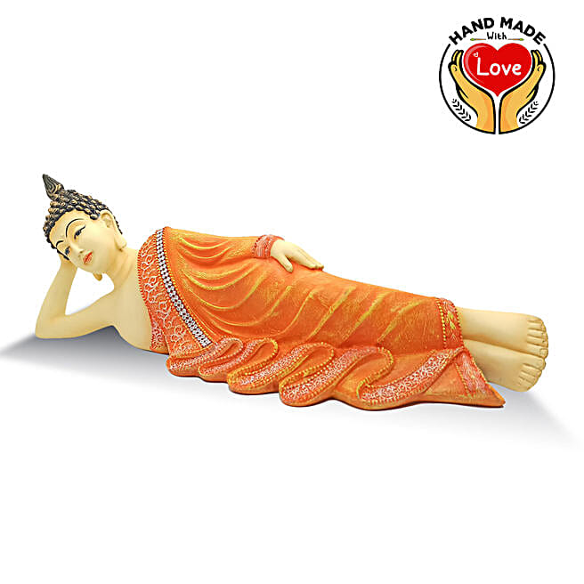 Resin Sleeping Buddha I.V Orange 16.5 inch
