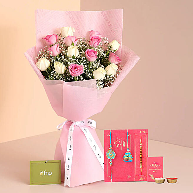 Rose Bouquet N Bhaiya Bhabhi Rakhi Ensemble