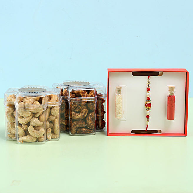 Rose & Khus Cashews With Fancy Rakhi Combo
