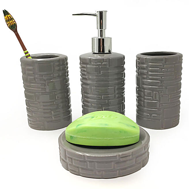 Round Brick Ceramic Bathroom Set- Grey