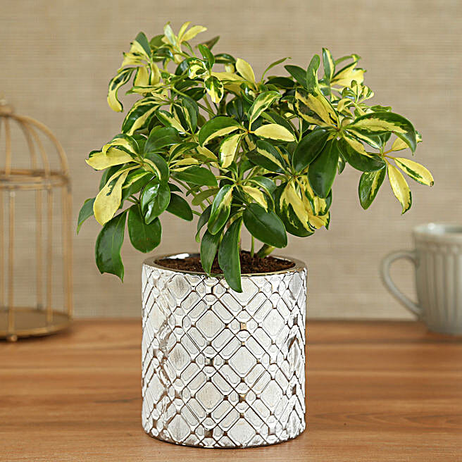 Schefflera Plant In Zigzag Cylindrical Ceramic Pot
