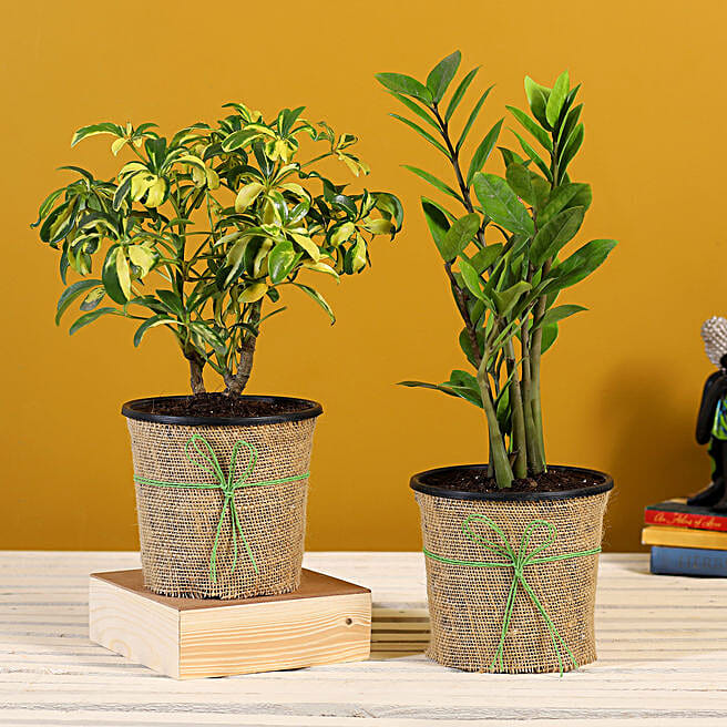 Schefflera Zamia Plant In Black Plastic Pots