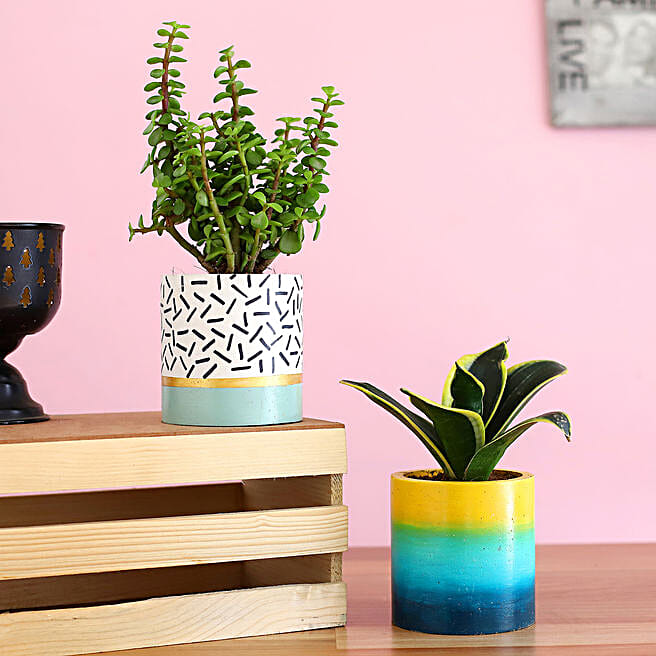 Set Of 2 Green Succulent Plants