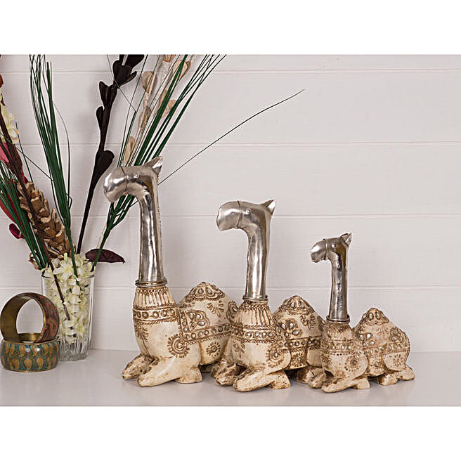 Set of 3 Camel Decorative Figurines Cream Color
