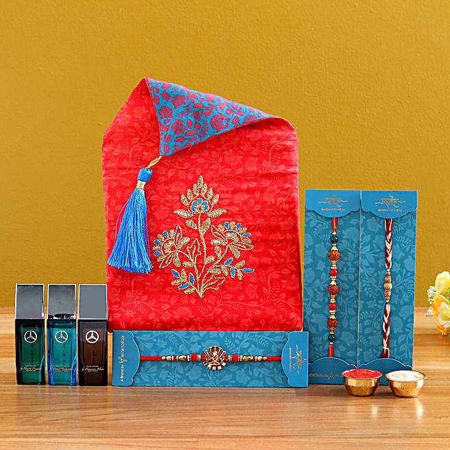 Set of 3 Rakhi and Mercedez-Benz Perfumes