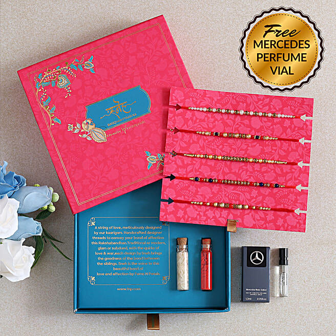 Set of 5 Traditional Beads Rakhi & Free Mercedes Perfume
