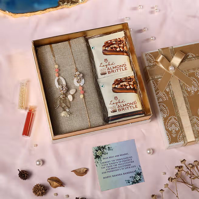Shimmering Bhaiya Bhabhi Rakhi Set & Almond Brittles