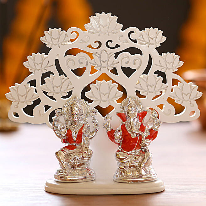 Silver Plated Red Lakshmi Ganesha