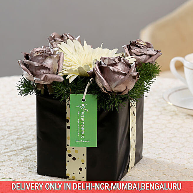 Silver Roses & Gerbera Floral Box