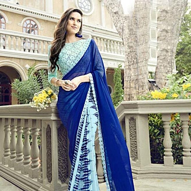 Sky Blue Fomal Printed Saree