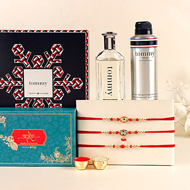 Beads Kundan Rakhi Set & Tommy Hilfiger Deo