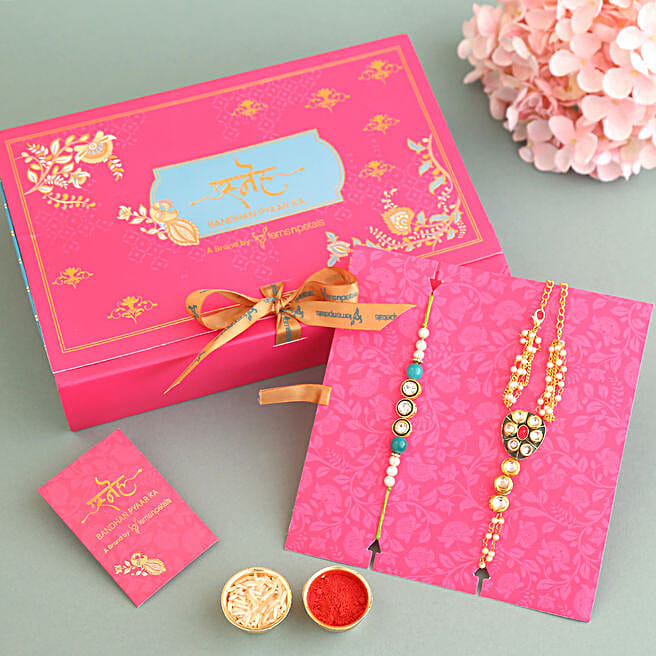 Sneh Beautiful Kundan Bhaiya Bhabhi Rakhi Set